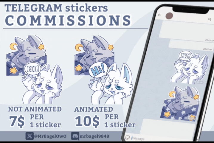 Non animated: 7$Ychs are cheeper then commissions so you can wait for an available ych on my FA or Twitter (X)